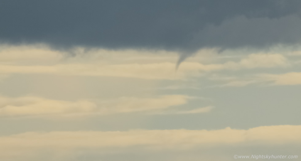 Tighter crop from a third image, in total I got six stills before it went back into the base and vanished for good, it actually was a stunning sight visually despite its fleeting performance, I couldn't believe I had just captured my third funnel of the season, this one was clearly the best of the trio. I checked radar when I got back, in the distance behind this base there where two showers with red cores and at the time of the funnel observation (14.55 BST) this would put the funnel approximately over the Omagh road area precisely between Cookstown and Omagh. If only it had been closer it would have been a much more epic catch, there's a chance this could have touched the ground as a weak tornado however without an eyewitness at the scene I will never know.