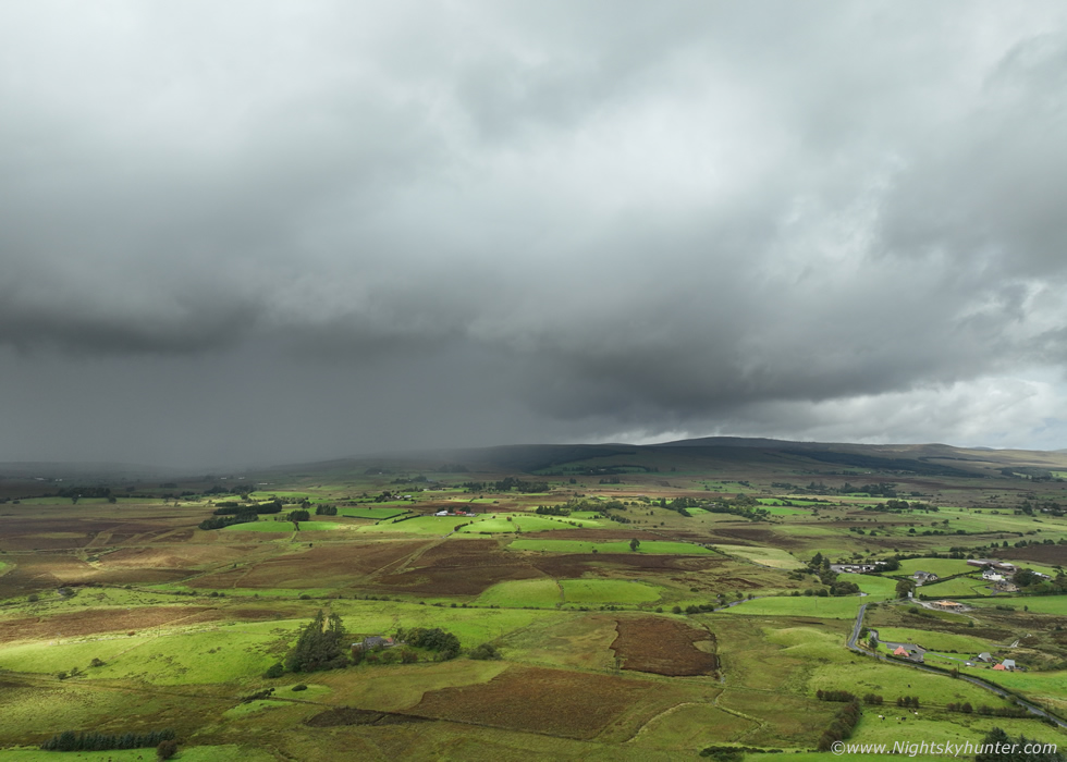 It was still raining but we got the drones in the air anyway and began to take images. I flew E chasing the precip core so I could keep up with it and maintain a decent bow before it vanished. I obtained really nice footage flying over the sunlit landscape between Beaghmore and Davagh Forest with that lovely bow over the forest like a coloured crown. This is a still image however the footage is much better and can be viewed in the video below. This encounter raised our spirits, at least now we got something photogenic and if nothing else happened this day then at least we wouldn't be going home empty handed.